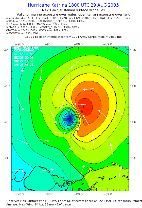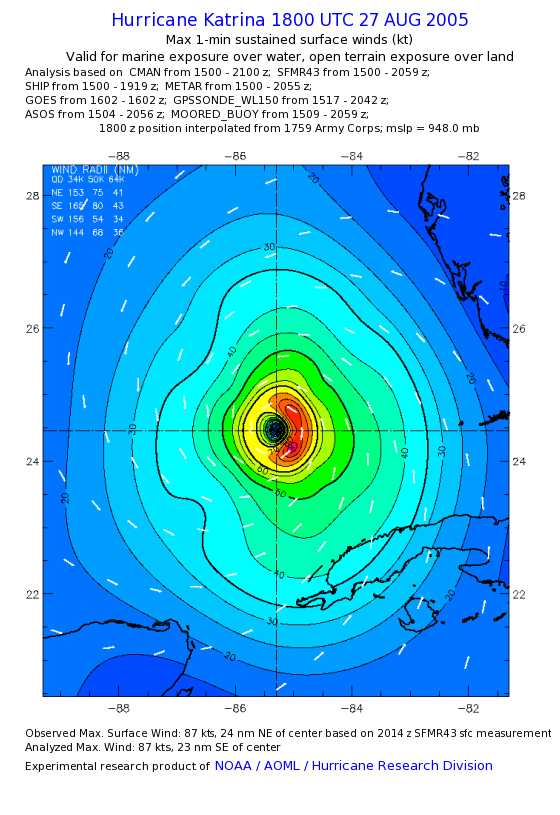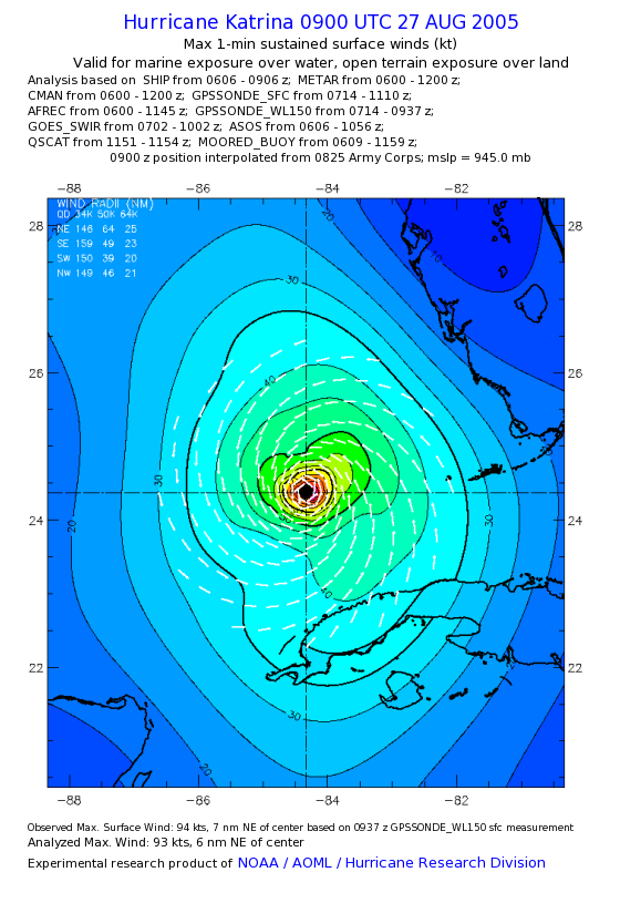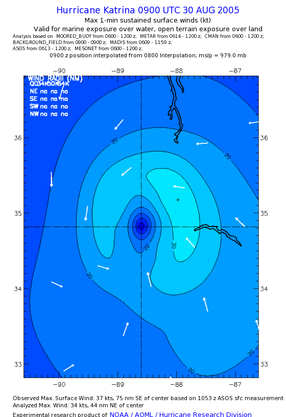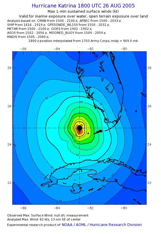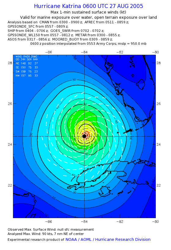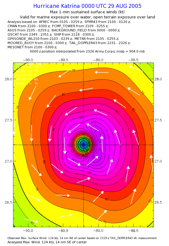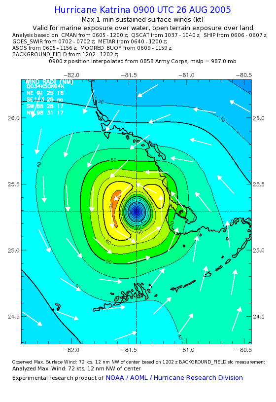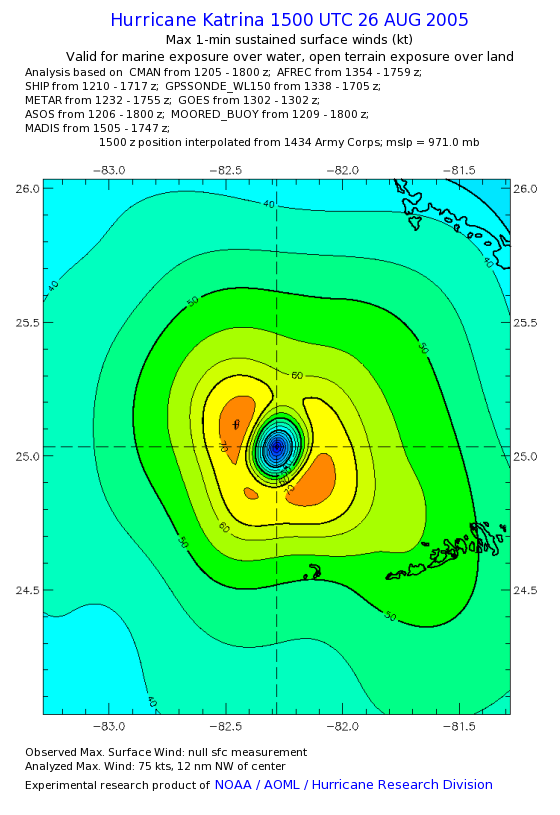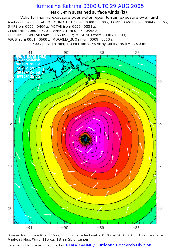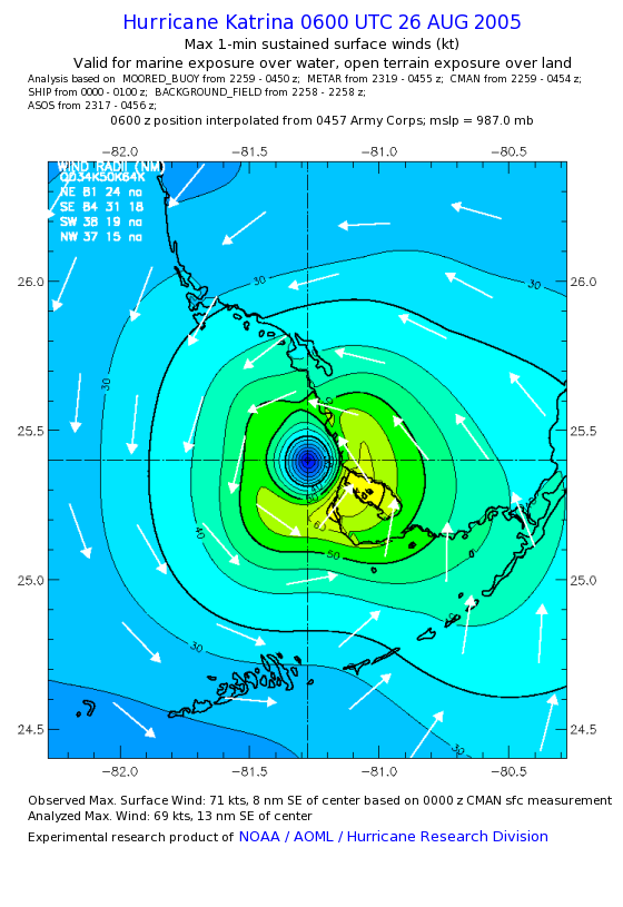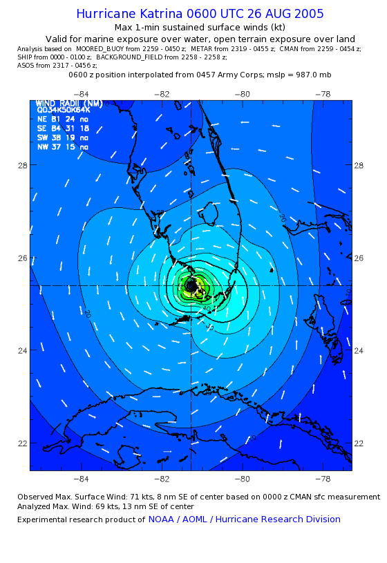 | The following maximum sustained wind swaths for Hurricane Katrina are preliminary results and will be subject to further modifications as new data become available. | |||||||||||