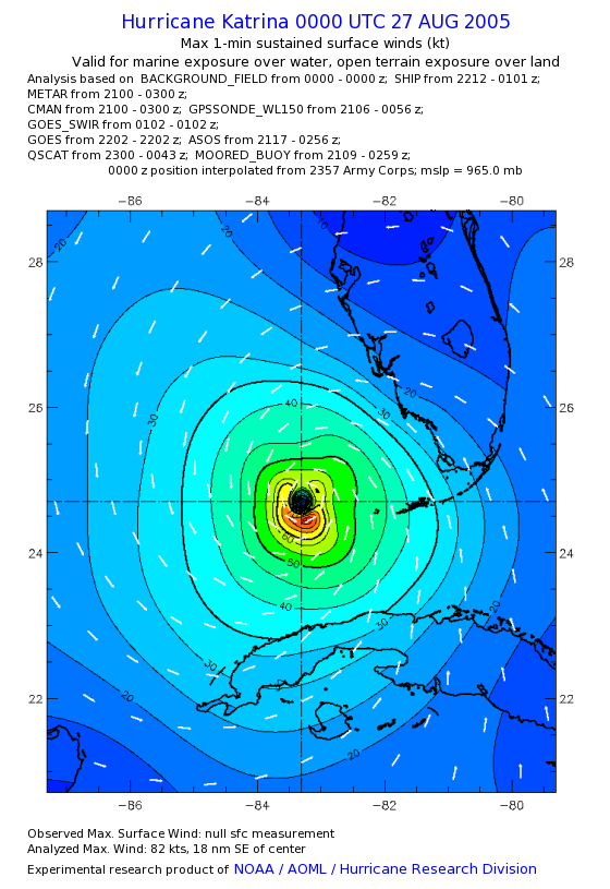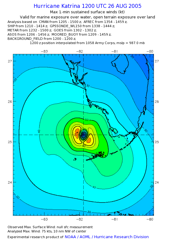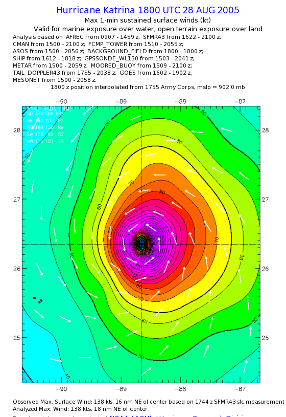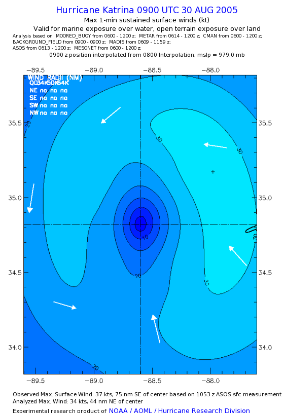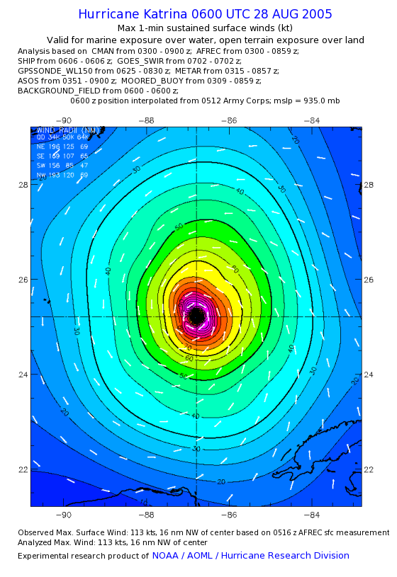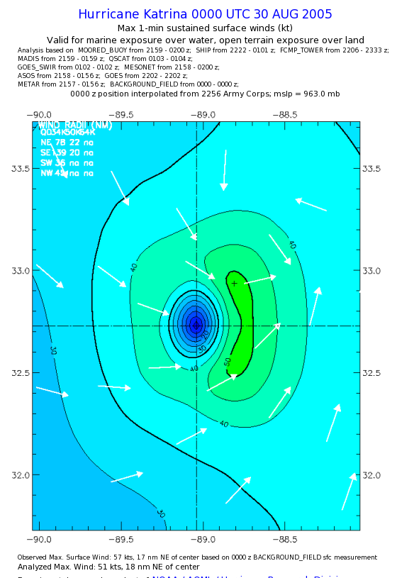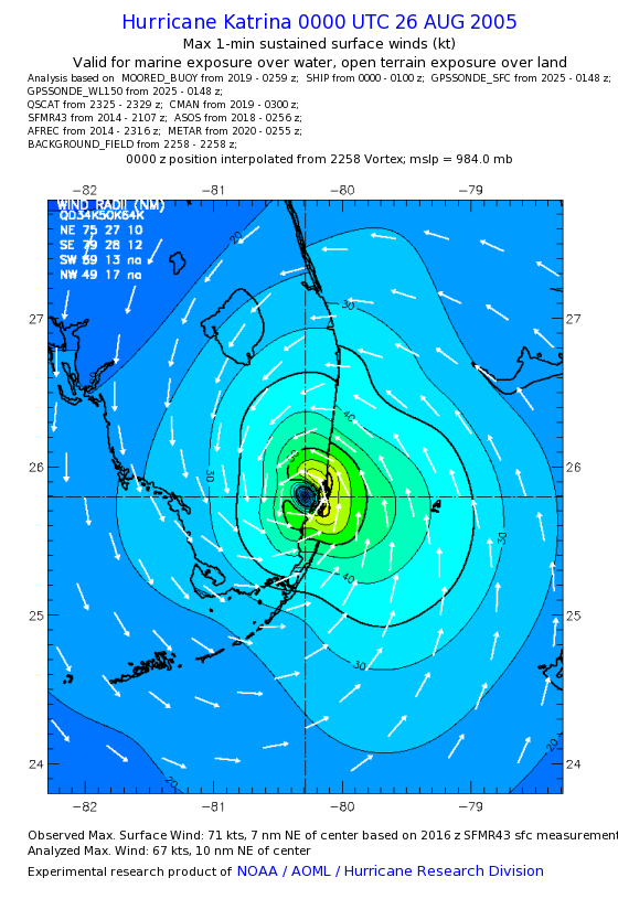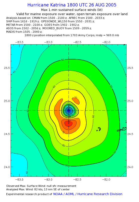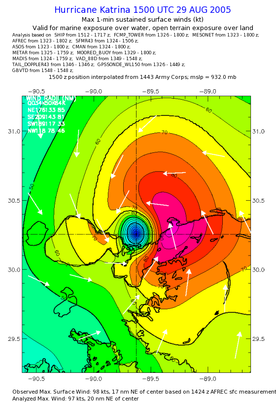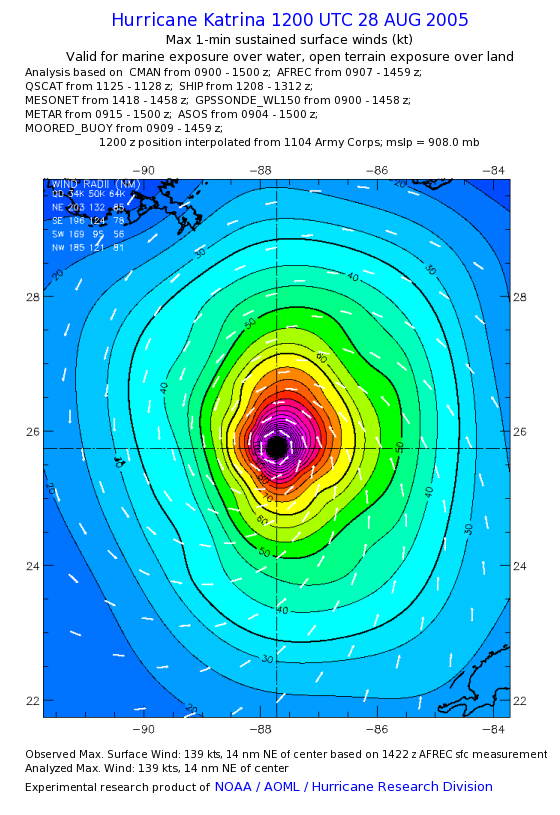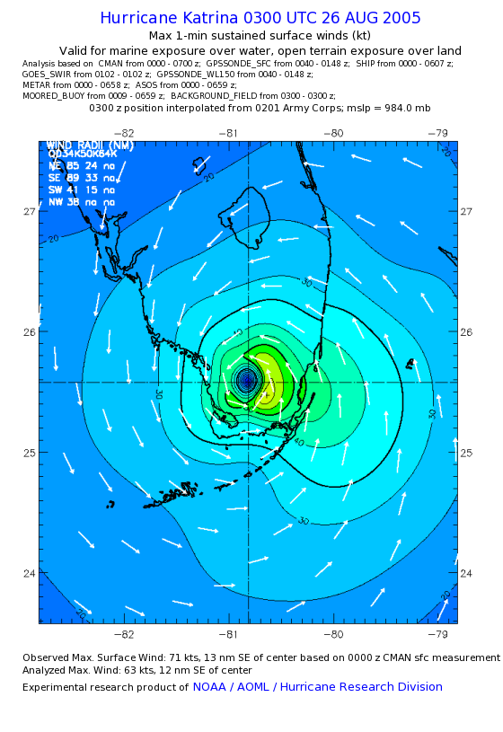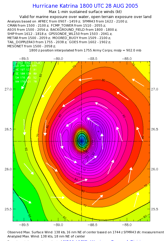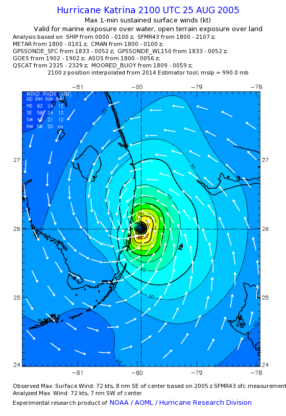 | The following maximum sustained wind swaths for Hurricane Katrina are preliminary results and will be subject to further modifications as new data become available. | |||||||||||