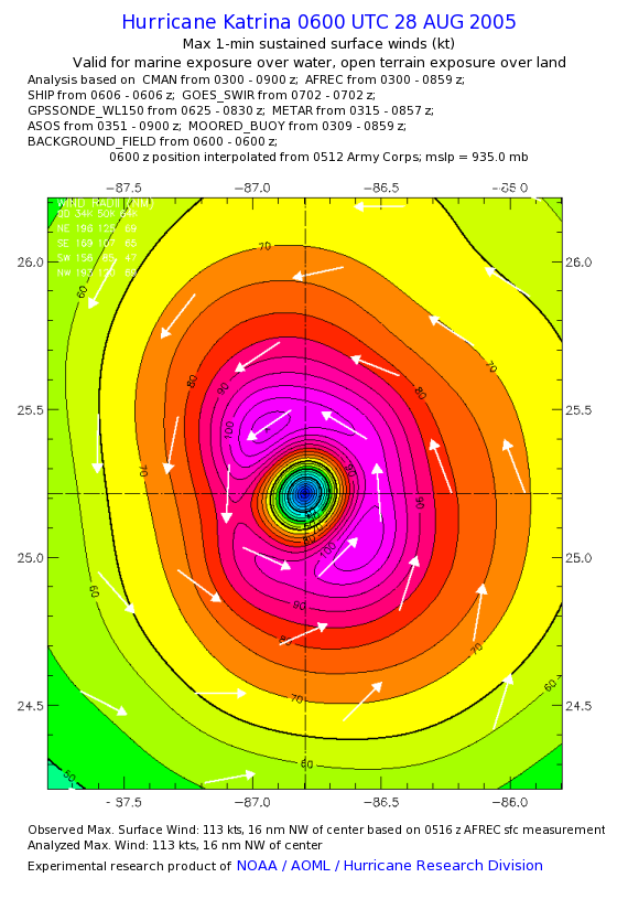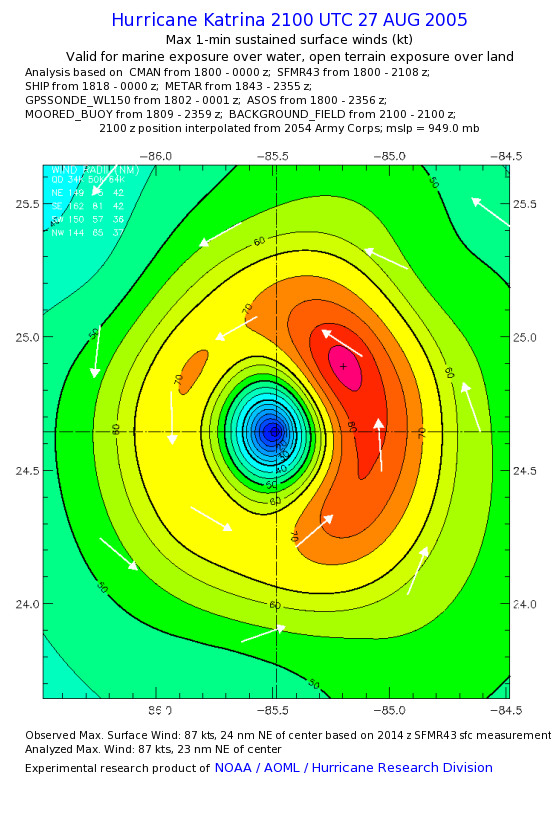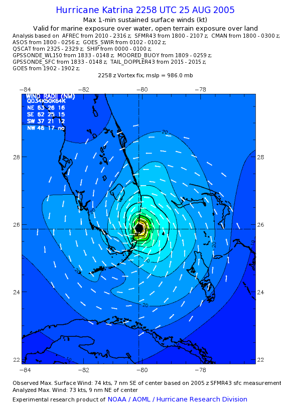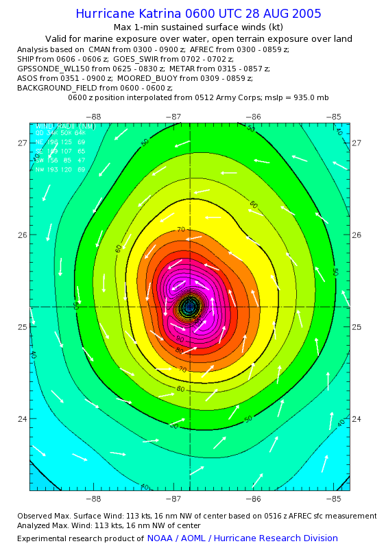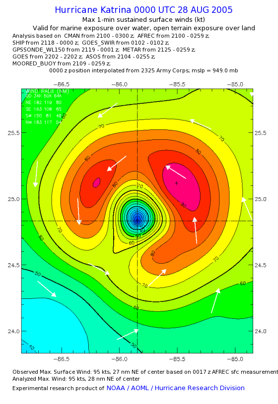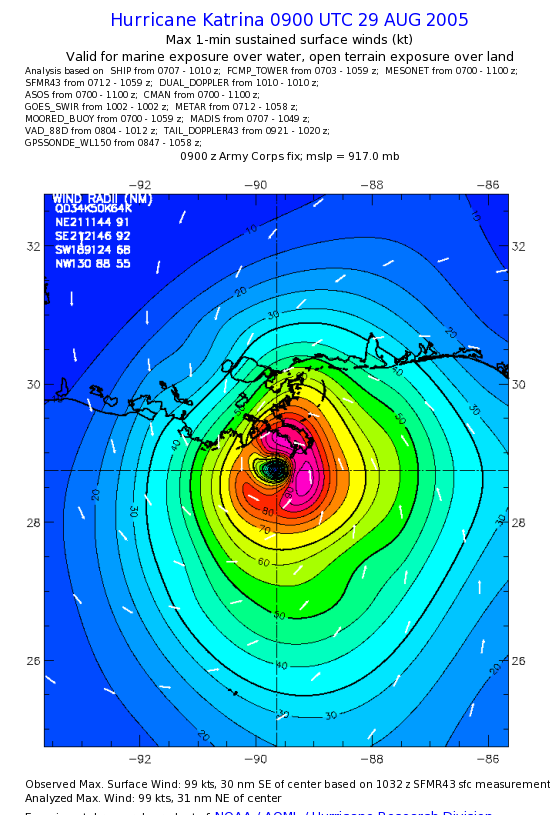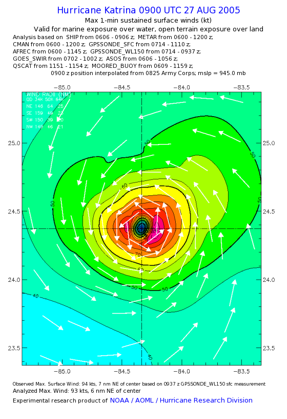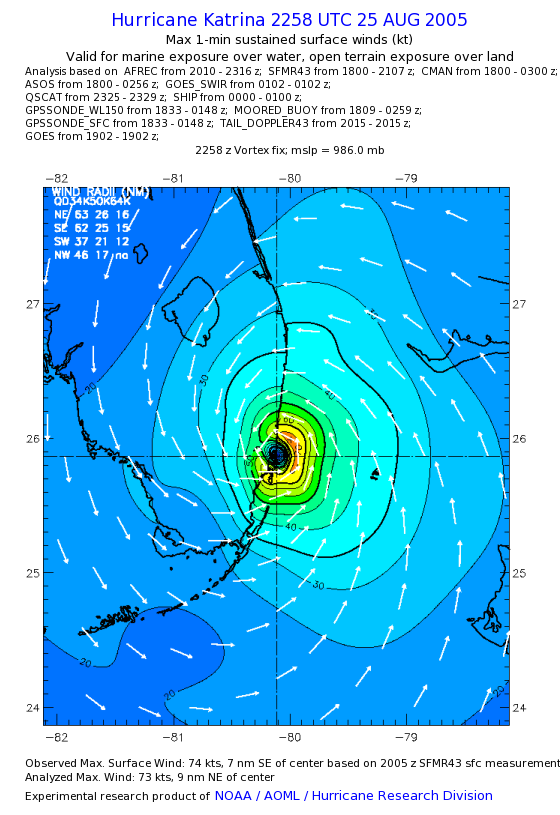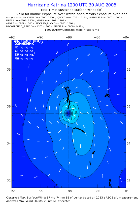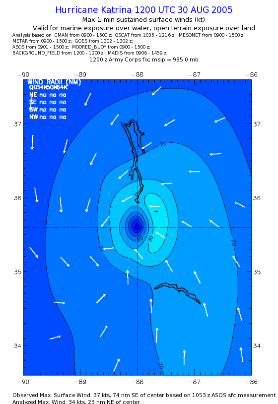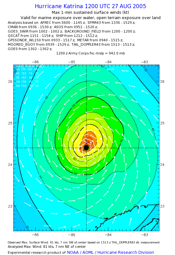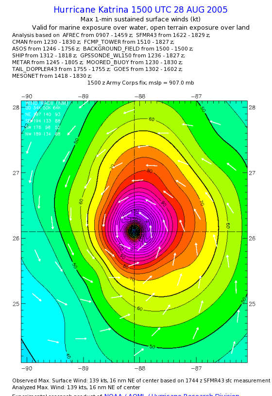 | The following maximum sustained wind swaths for Hurricane Katrina are preliminary results and will be subject to further modifications as new data become available. | |||||||||||