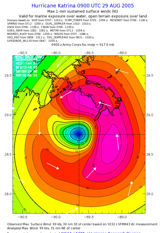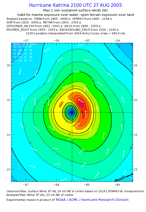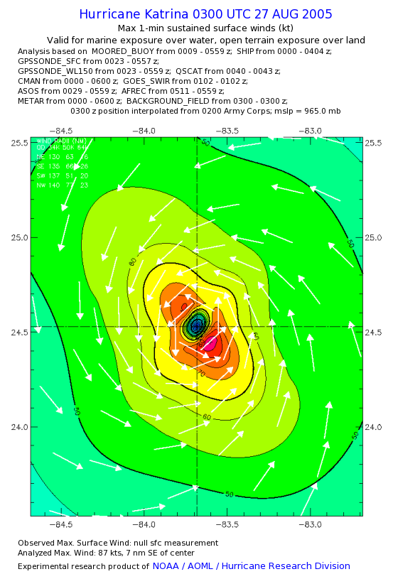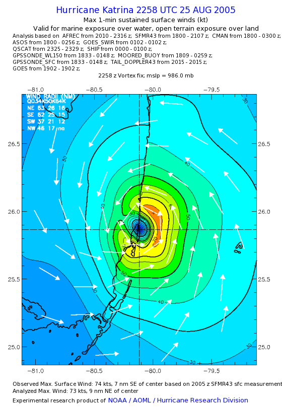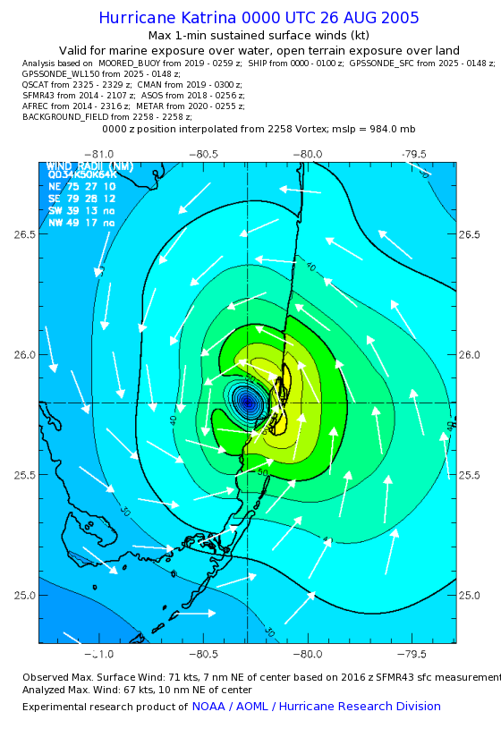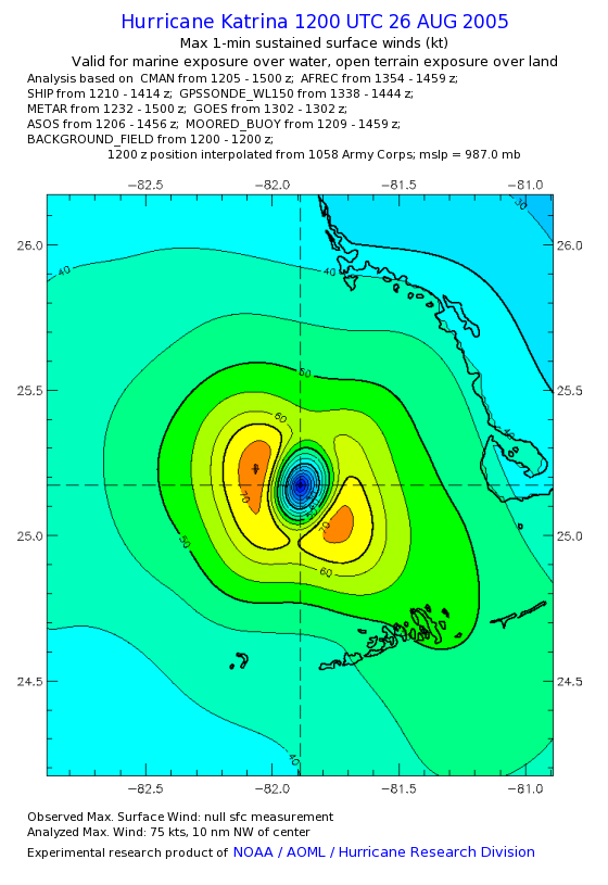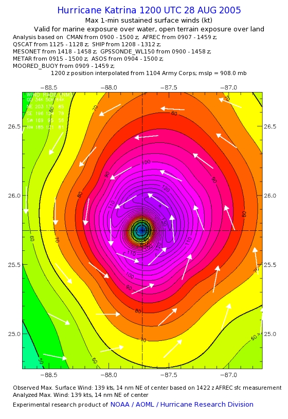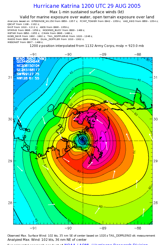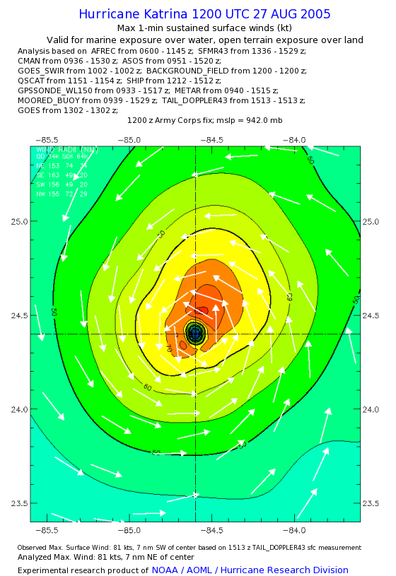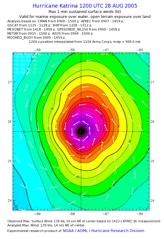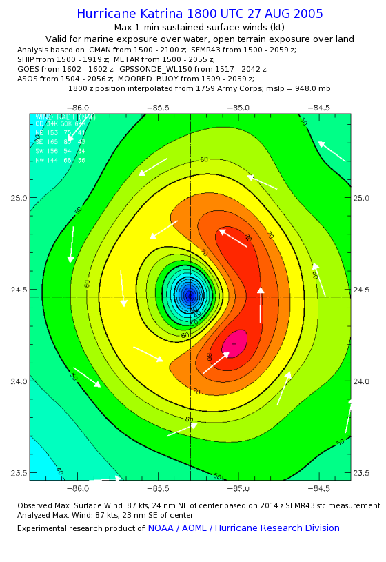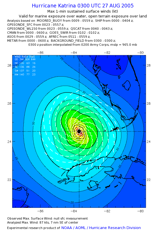 | The following maximum sustained wind swaths for Hurricane Katrina are preliminary results and will be subject to further modifications as new data become available. | |||||||||||