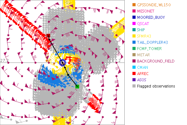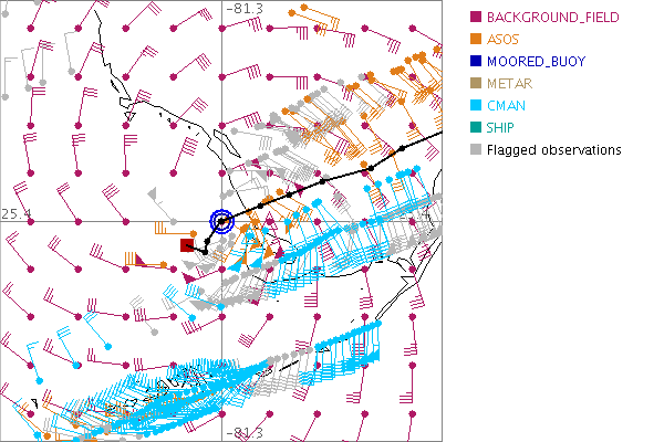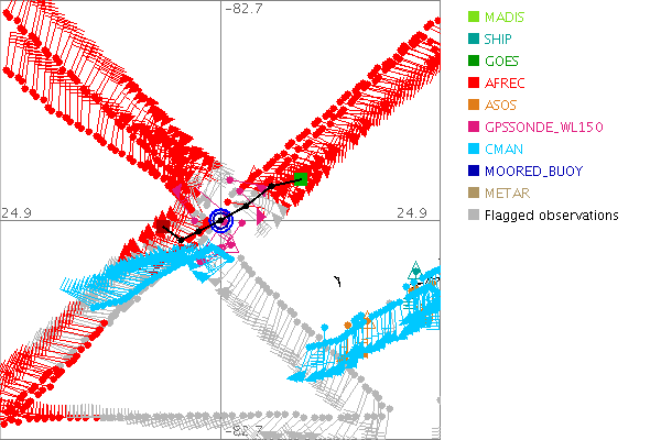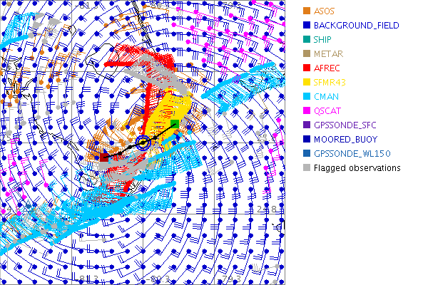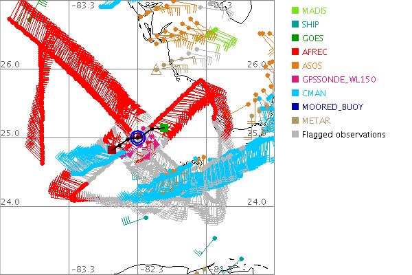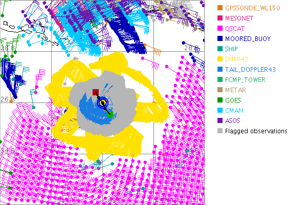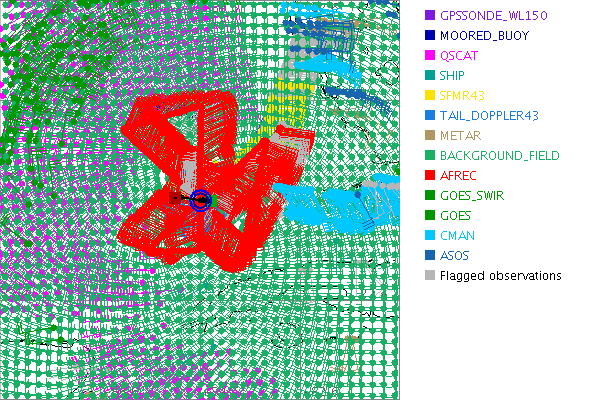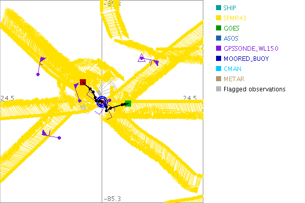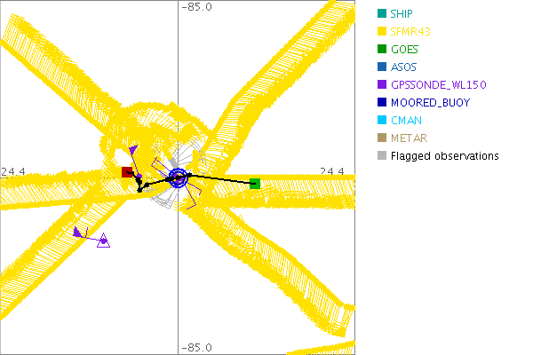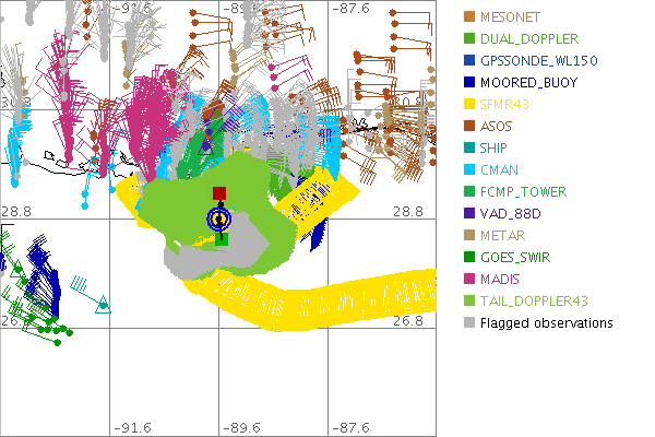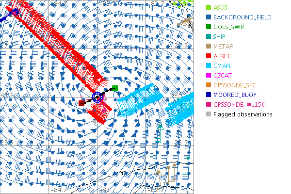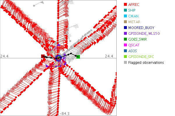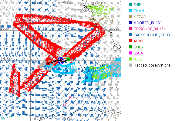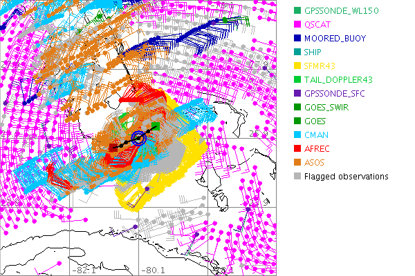 As a public service we are hosting the legacy H*wind archive that was formerly available through NOAA. Most of the archive was conducted in real-time so data collected after the analysis time were not available. Methods used to conduct the analyses evolved over the years. Grid spacing is on the order of 6 km and maximum domain size varies but is typically 8 x 8 degrees. There are known errors in some of the data coverage, mapping, and gridded products. For more information on the archive please go here. For realtime and post storm analysis of the 2014 season and a revised historical archive go here. |