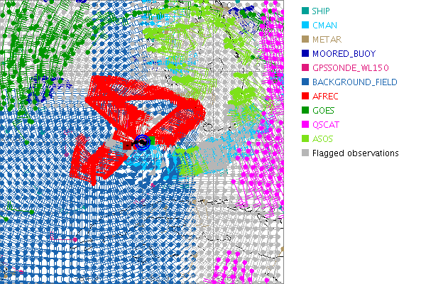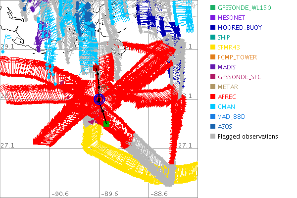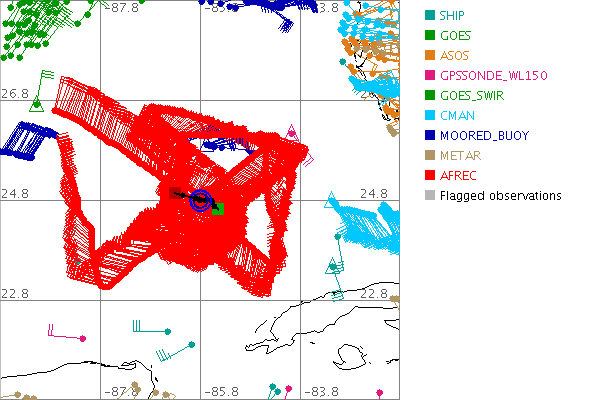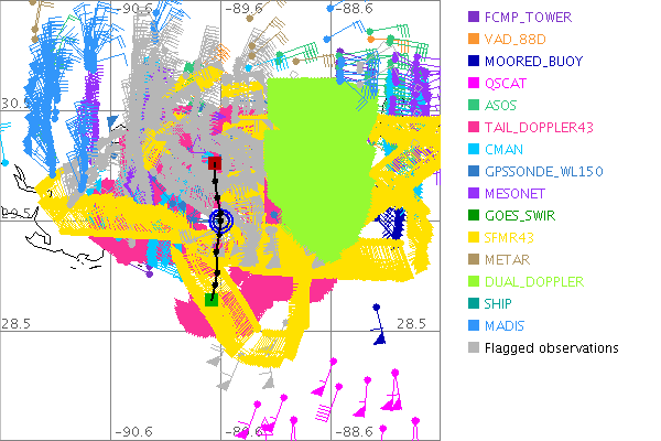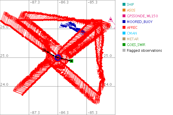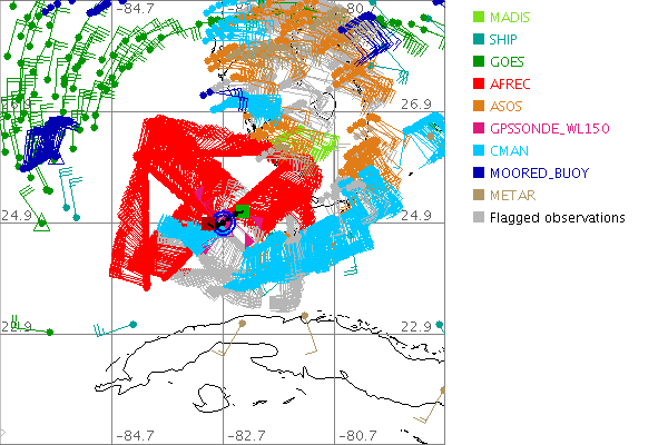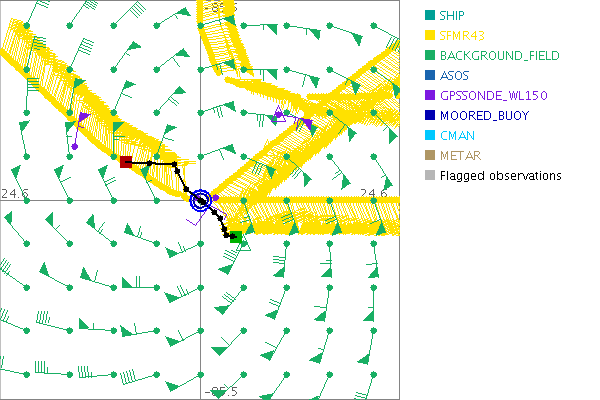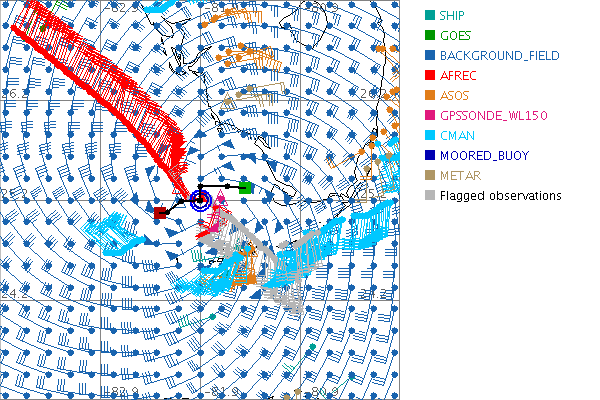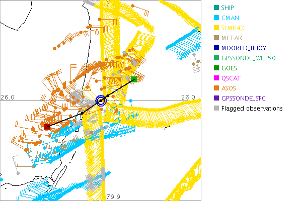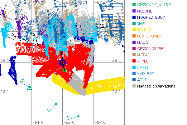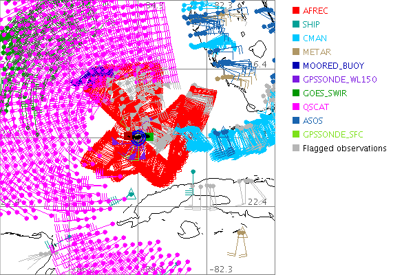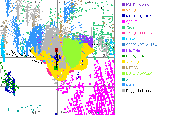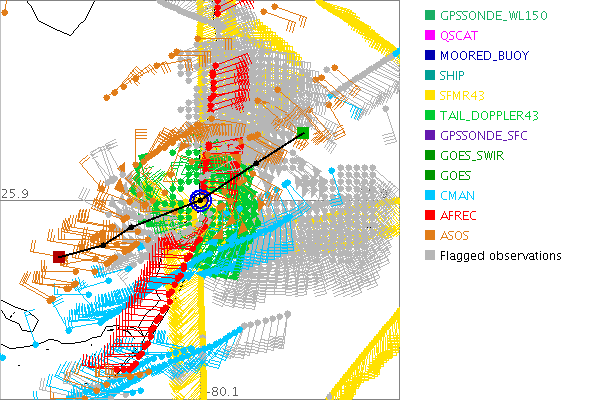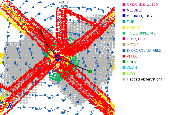 As a public service we are hosting the legacy H*wind archive that was formerly available through NOAA. Most of the archive was conducted in real-time so data collected after the analysis time were not available. Methods used to conduct the analyses evolved over the years. Grid spacing is on the order of 6 km and maximum domain size varies but is typically 8 x 8 degrees. There are known errors in some of the data coverage, mapping, and gridded products. For more information on the archive please go here. For realtime and post storm analysis of the 2014 season and a revised historical archive go here. |