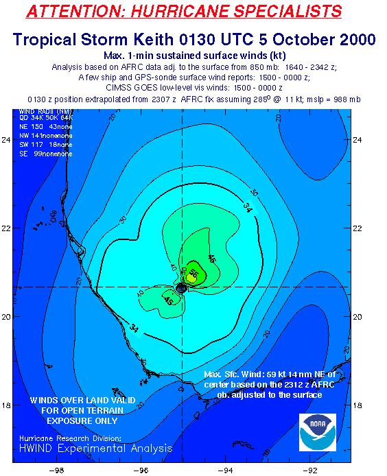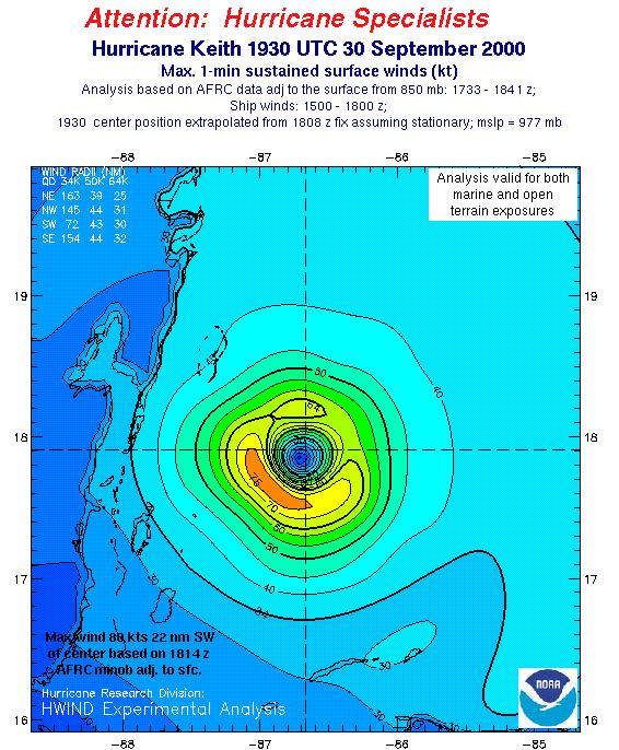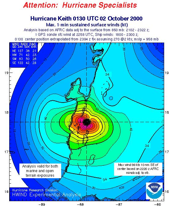 As a public service we are hosting the legacy H*wind archive that was formerly available through NOAA. Most of the archive was conducted in real-time so data collected after the analysis time were not available. Methods used to conduct the analyses evolved over the years. Grid spacing is on the order of 6 km and maximum domain size varies but is typically 8 x 8 degrees. There are known errors in some of the data coverage, mapping, and gridded products. For more information on the archive please go here. For realtime and post storm analysis of the 2014 season and a revised historical archive go here.