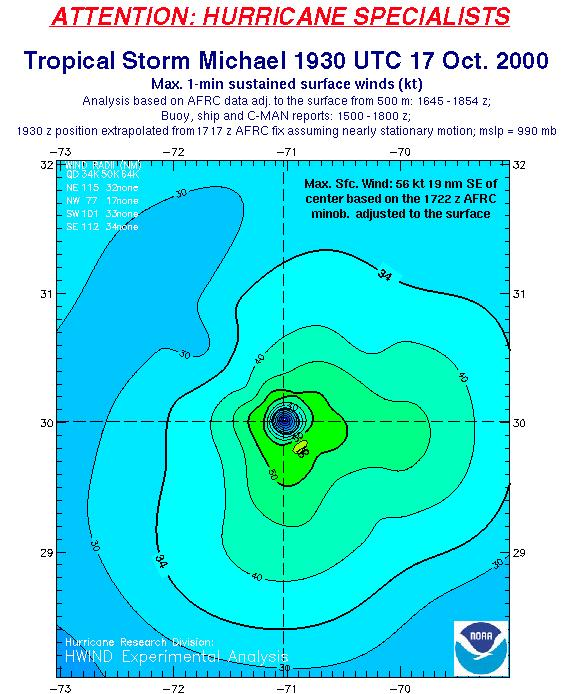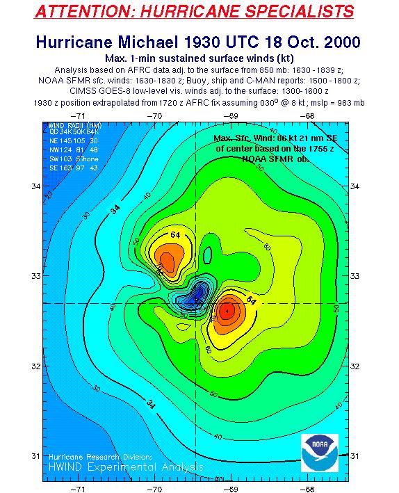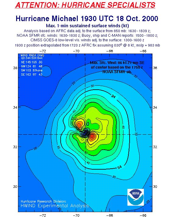 As a public service we are hosting the legacy H*wind archive that was formerly available through NOAA. Most of the archive was conducted in real-time so data collected after the analysis time were not available. Methods used to conduct the analyses evolved over the years. Grid spacing is on the order of 6 km and maximum domain size varies but is typically 8 x 8 degrees. There are known errors in some of the data coverage, mapping, and gridded products. For more information on the archive please go here. For realtime and post storm analysis of the 2014 season and a revised historical archive go here.