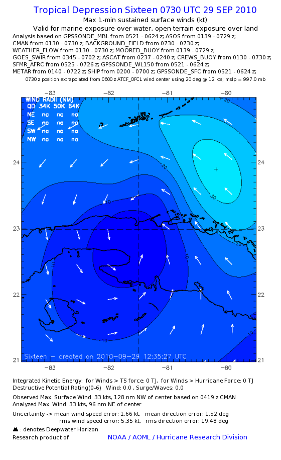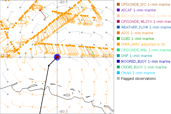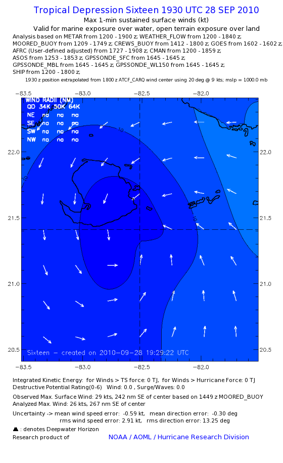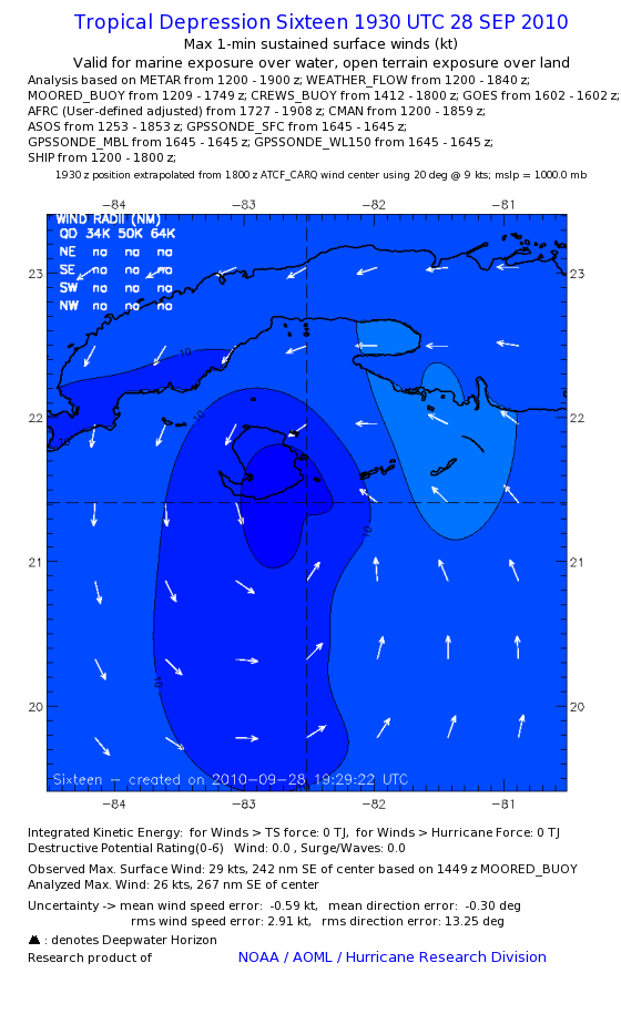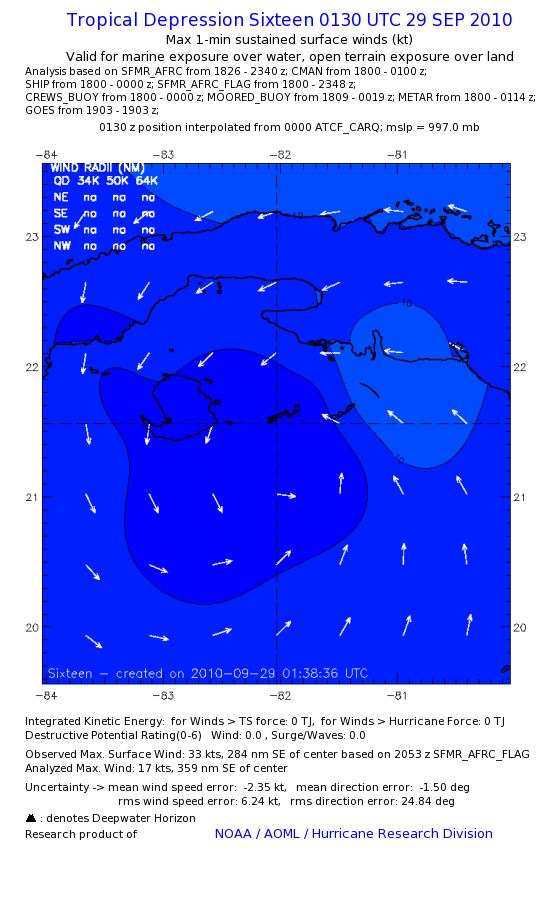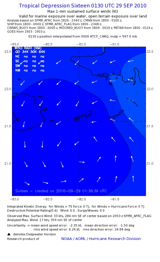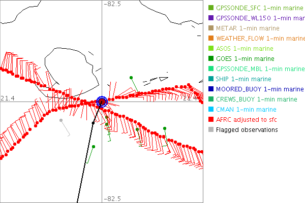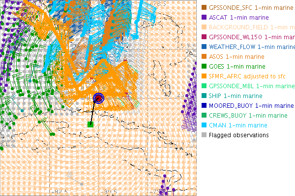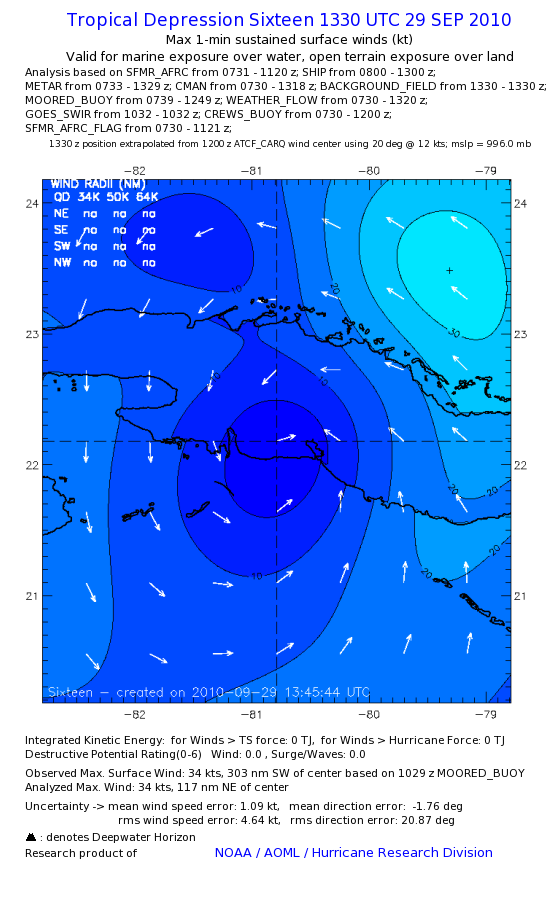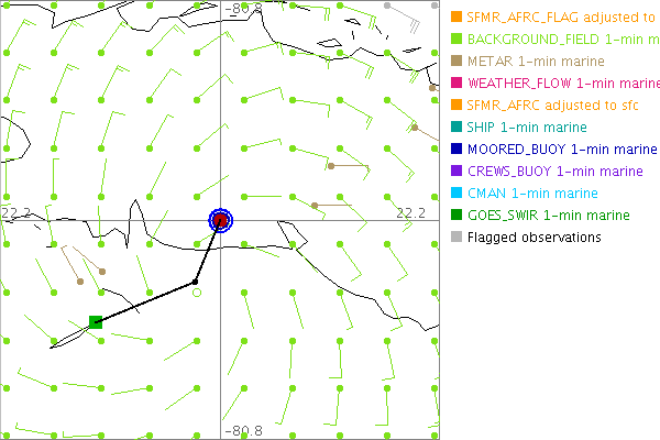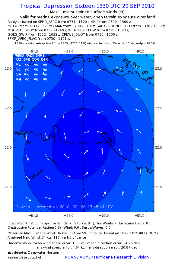 As a public service we are hosting the legacy H*wind archive that was formerly available through NOAA. Most of the archive was conducted in real-time so data collected after the analysis time were not available. Methods used to conduct the analyses evolved over the years. Grid spacing is on the order of 6 km and maximum domain size varies but is typically 8 x 8 degrees. There are known errors in some of the data coverage, mapping, and gridded products. For more information on the archive please go here. For realtime and post storm analysis of the 2014 season and a revised historical archive go here.