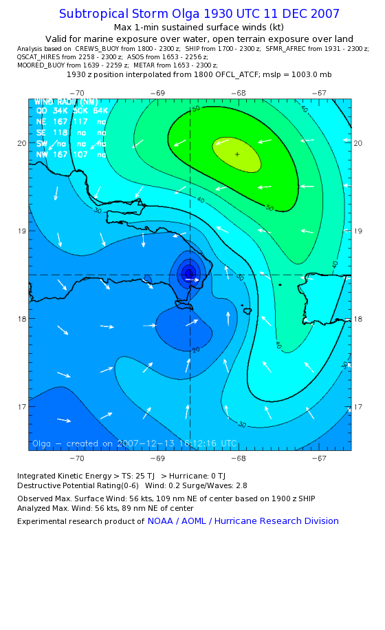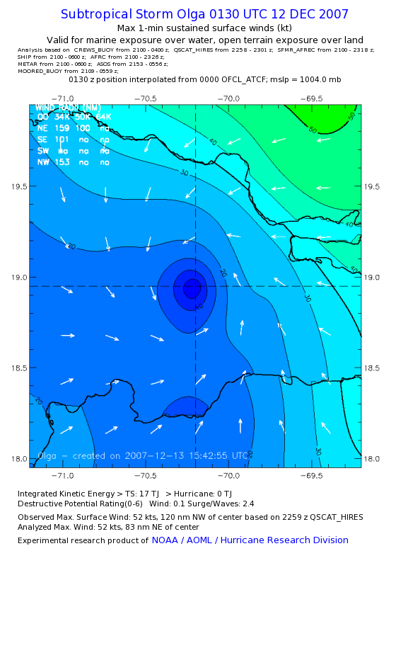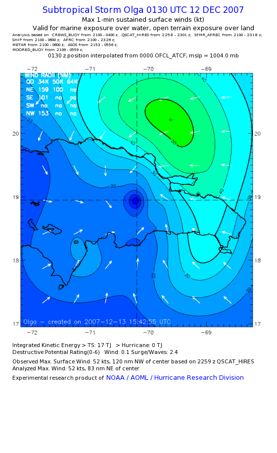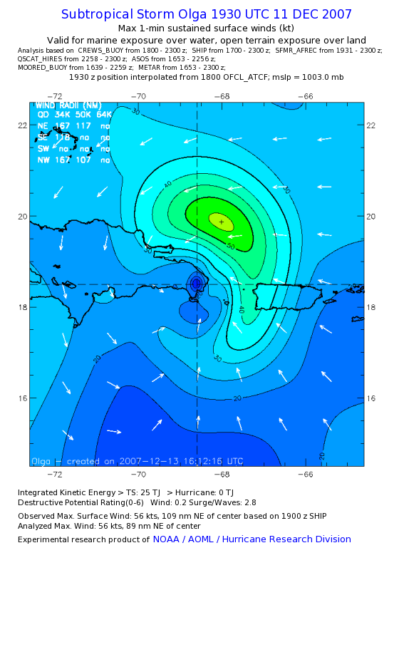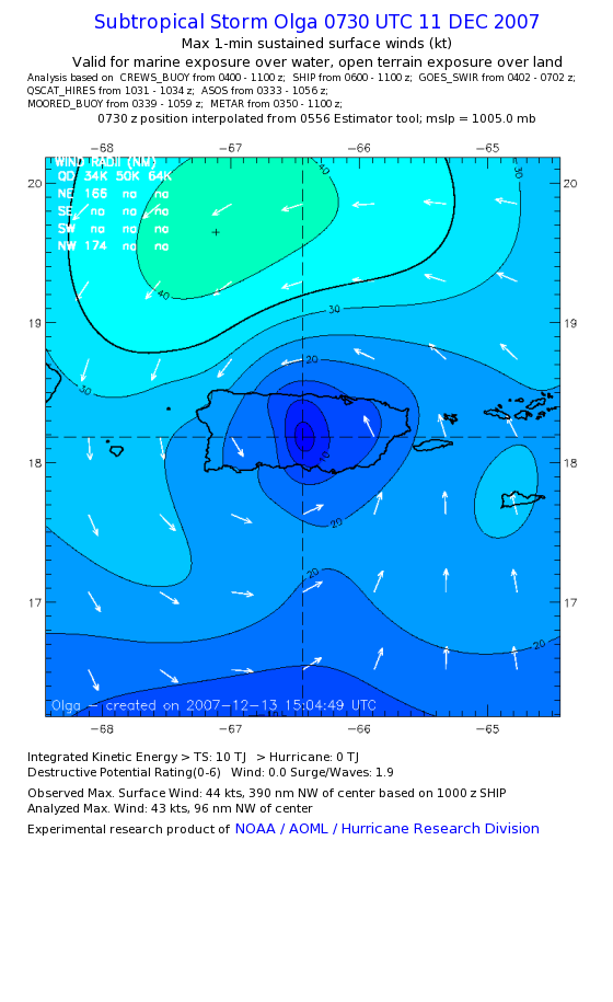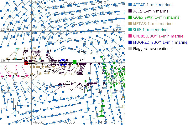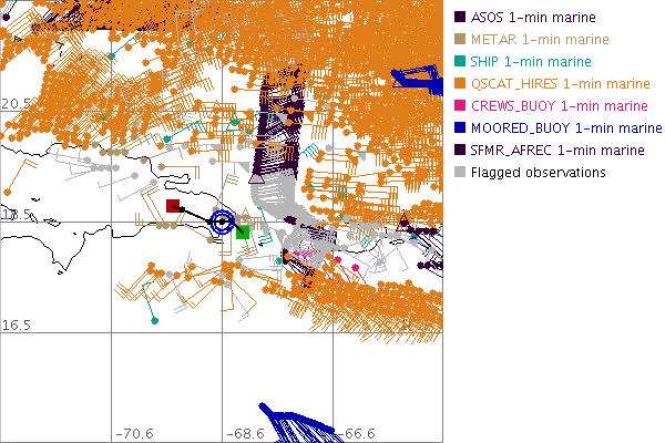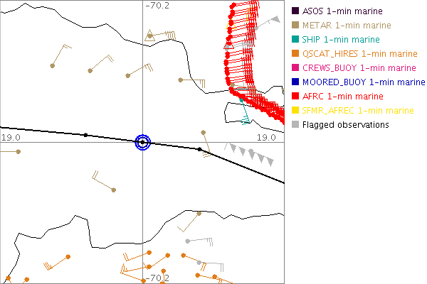 As a public service we are hosting the legacy H*wind archive that was formerly available through NOAA. Most of the archive was conducted in real-time so data collected after the analysis time were not available. Methods used to conduct the analyses evolved over the years. Grid spacing is on the order of 6 km and maximum domain size varies but is typically 8 x 8 degrees. There are known errors in some of the data coverage, mapping, and gridded products. For more information on the archive please go here. For realtime and post storm analysis of the 2014 season and a revised historical archive go here.