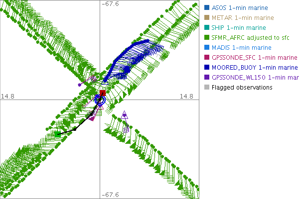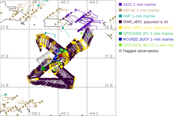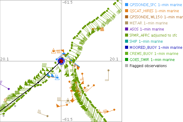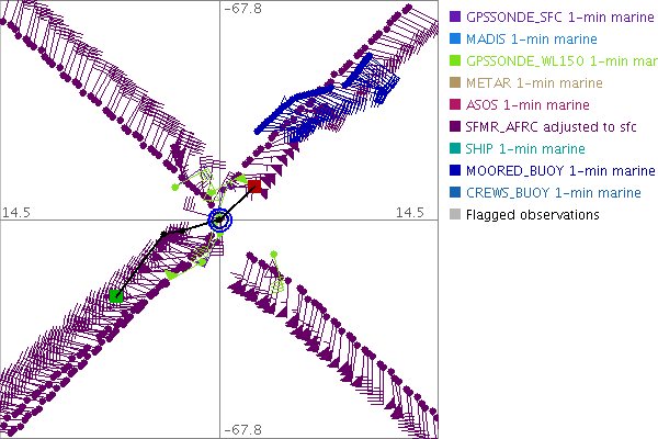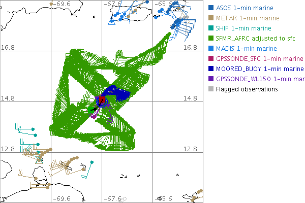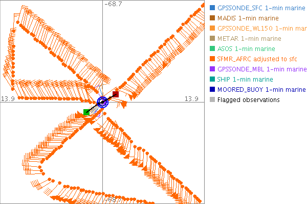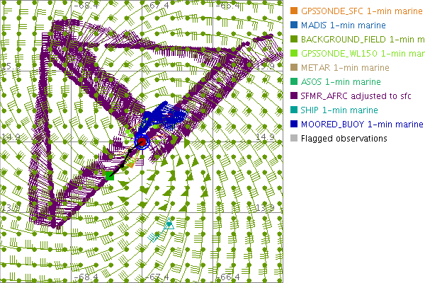 As a public service we are hosting the legacy H*wind archive that was formerly available through NOAA. Most of the archive was conducted in real-time so data collected after the analysis time were not available. Methods used to conduct the analyses evolved over the years. Grid spacing is on the order of 6 km and maximum domain size varies but is typically 8 x 8 degrees. There are known errors in some of the data coverage, mapping, and gridded products. For more information on the archive please go here. For realtime and post storm analysis of the 2014 season and a revised historical archive go here. |