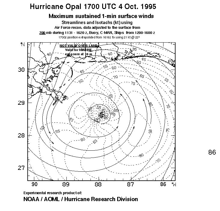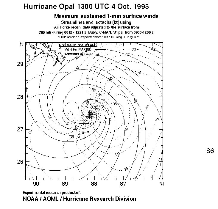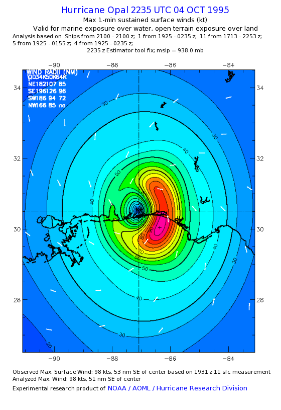 As a public service we are hosting the legacy H*wind archive that was formerly available through NOAA. Most of the archive was conducted in real-time so data collected after the analysis time were not available. Methods used to conduct the analyses evolved over the years. Grid spacing is on the order of 6 km and maximum domain size varies but is typically 8 x 8 degrees. There are known errors in some of the data coverage, mapping, and gridded products. For more information on the archive please go here. For realtime and post storm analysis of the 2014 season and a revised historical archive go here.