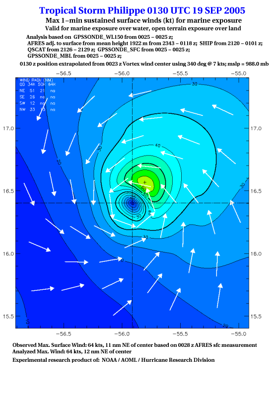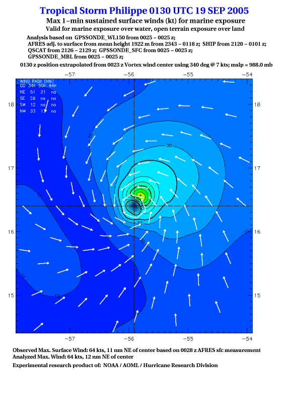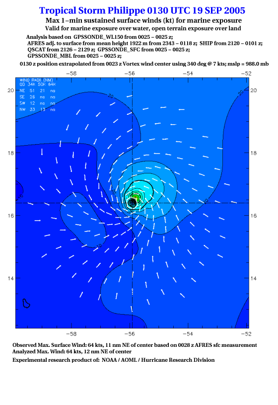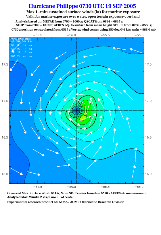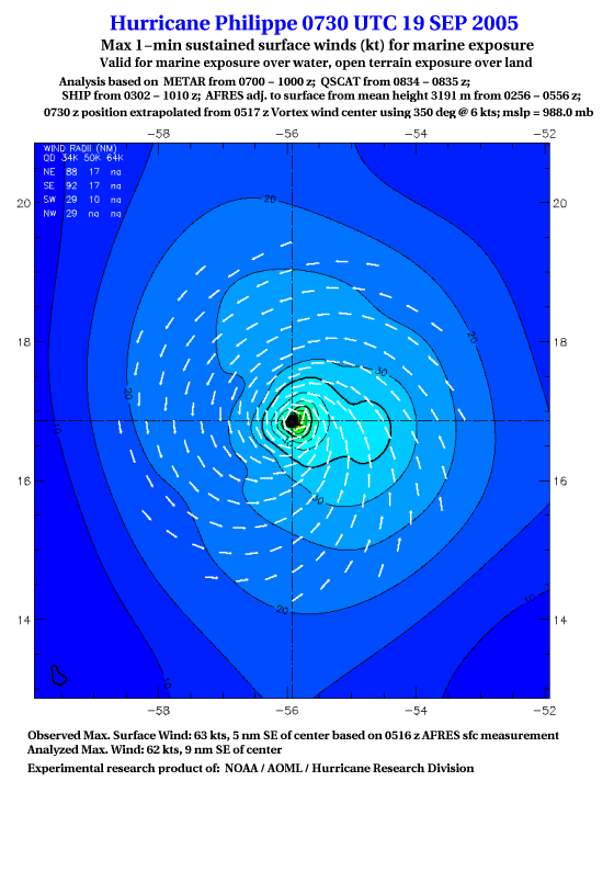 As a public service we are hosting the legacy H*wind archive that was formerly available through NOAA. Most of the archive was conducted in real-time so data collected after the analysis time were not available. Methods used to conduct the analyses evolved over the years. Grid spacing is on the order of 6 km and maximum domain size varies but is typically 8 x 8 degrees. There are known errors in some of the data coverage, mapping, and gridded products. For more information on the archive please go here. For realtime and post storm analysis of the 2014 season and a revised historical archive go here.
