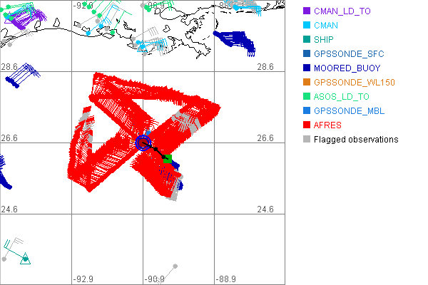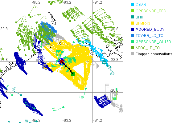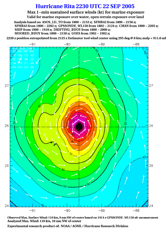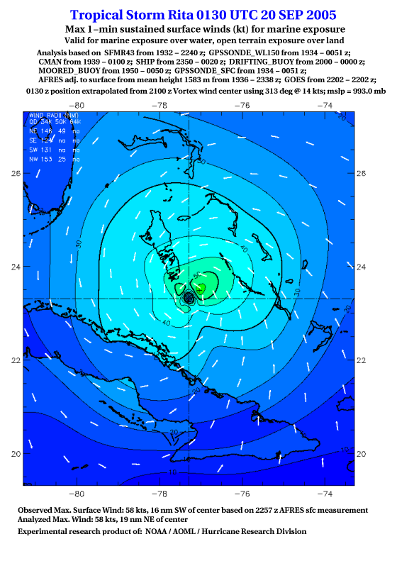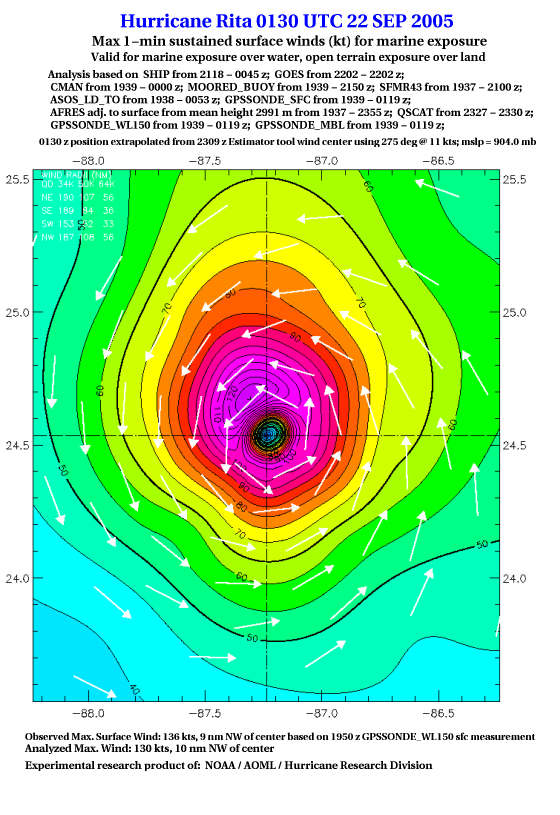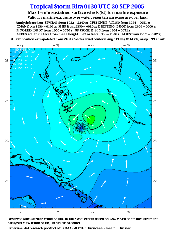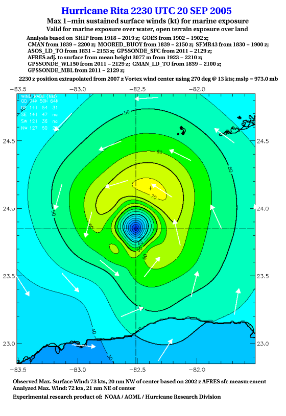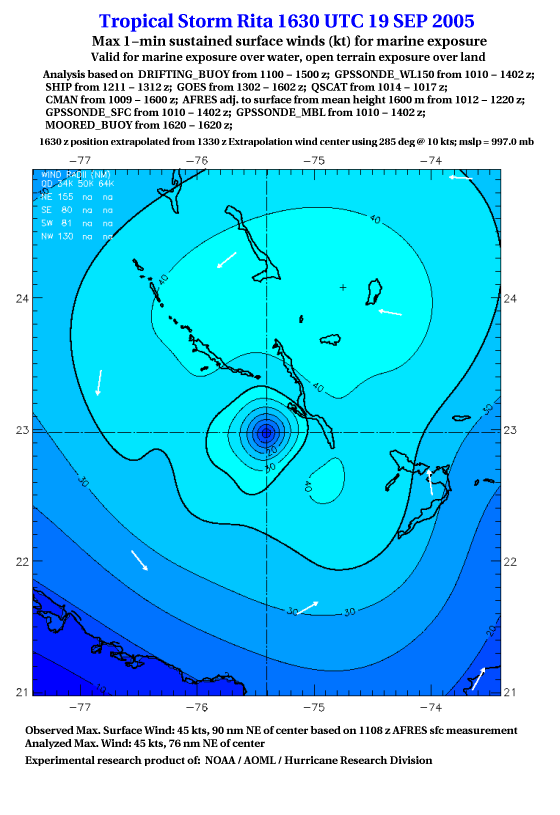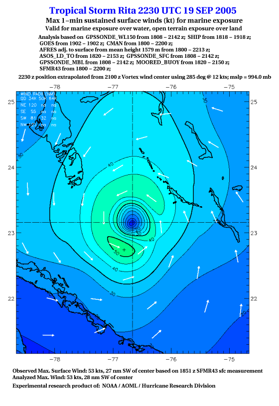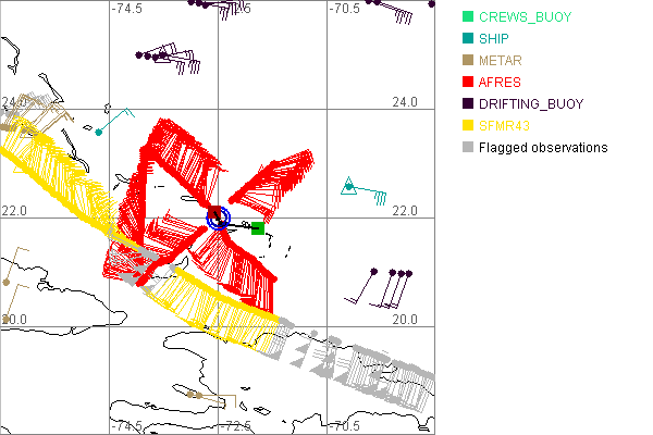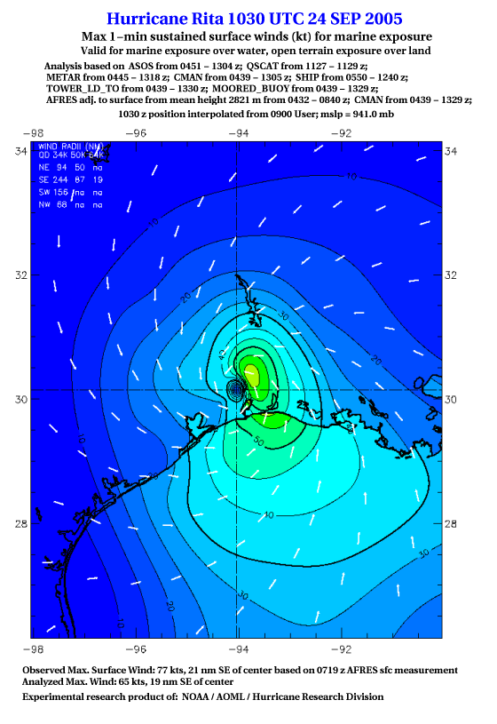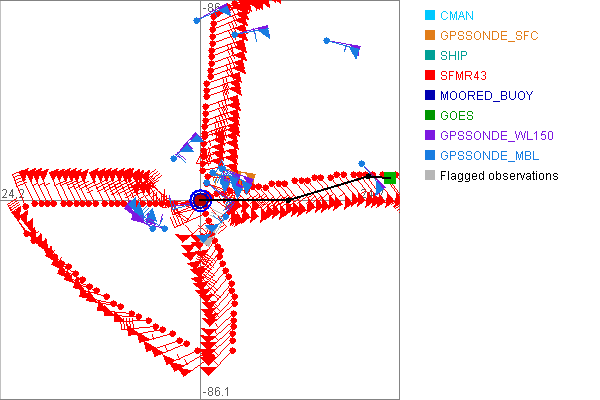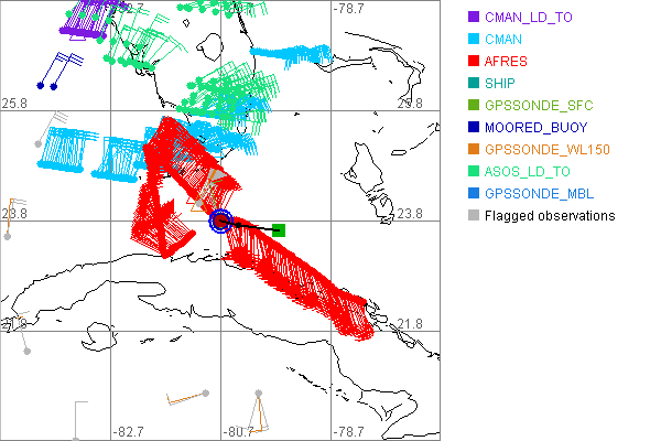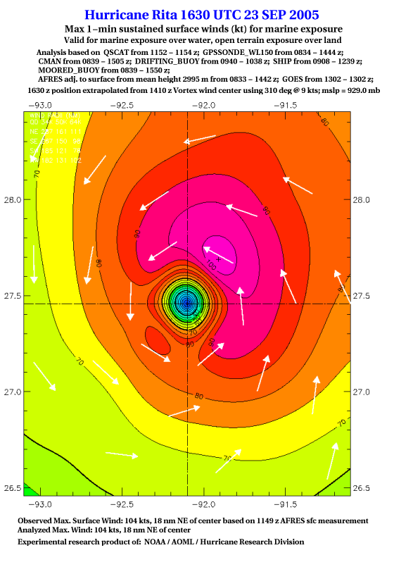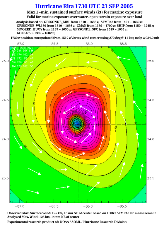 As a public service we are hosting the legacy H*wind archive that was formerly available through NOAA. Most of the archive was conducted in real-time so data collected after the analysis time were not available. Methods used to conduct the analyses evolved over the years. Grid spacing is on the order of 6 km and maximum domain size varies but is typically 8 x 8 degrees. There are known errors in some of the data coverage, mapping, and gridded products. For more information on the archive please go here. For realtime and post storm analysis of the 2014 season and a revised historical archive go here. |