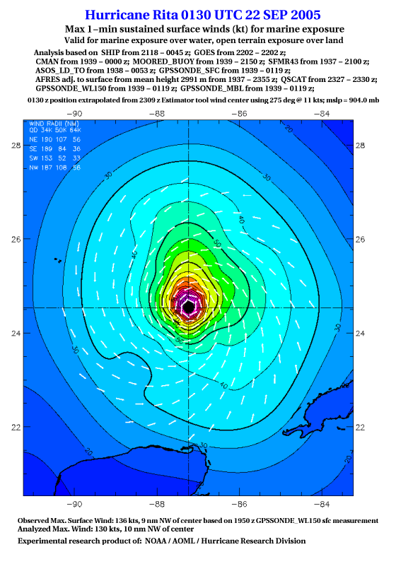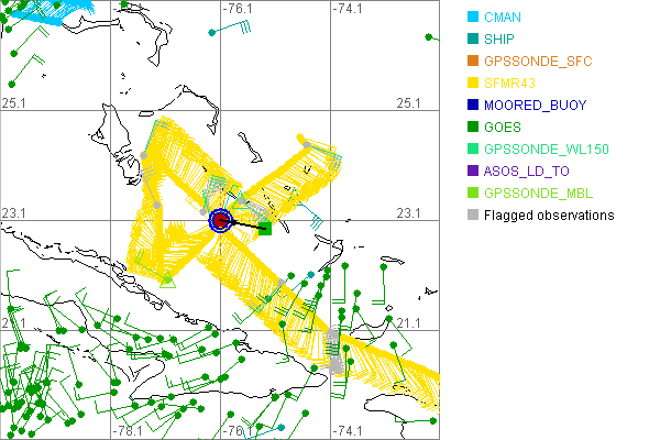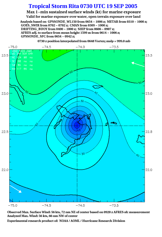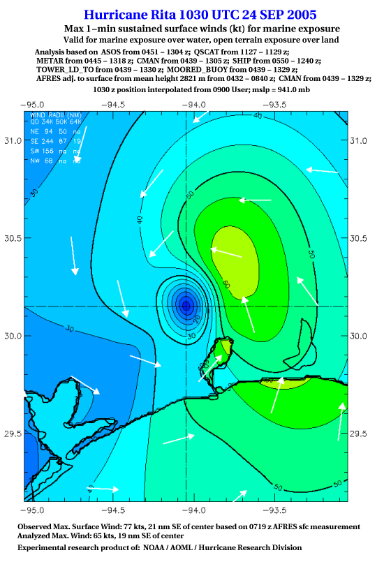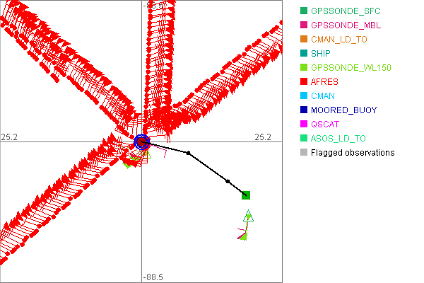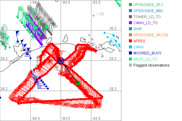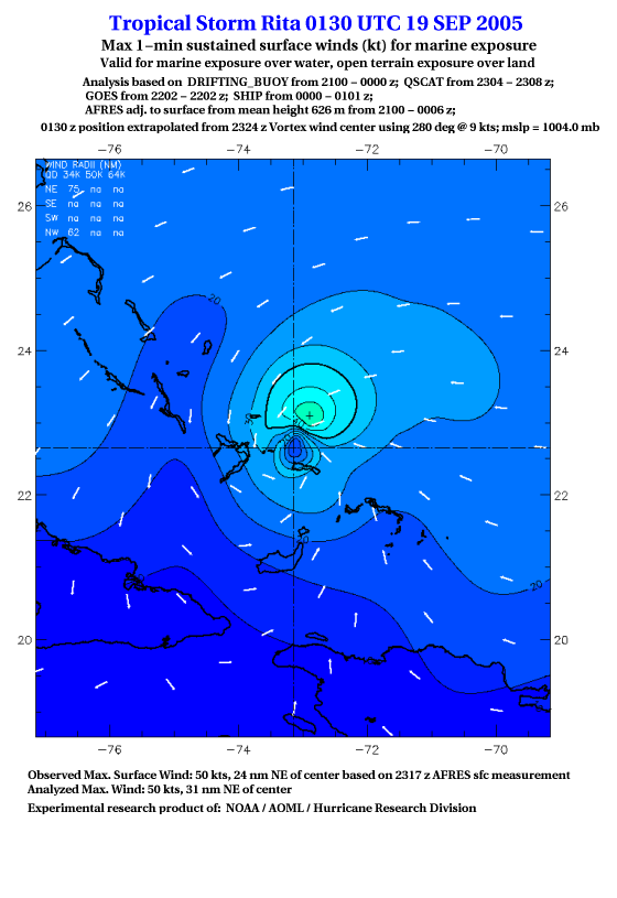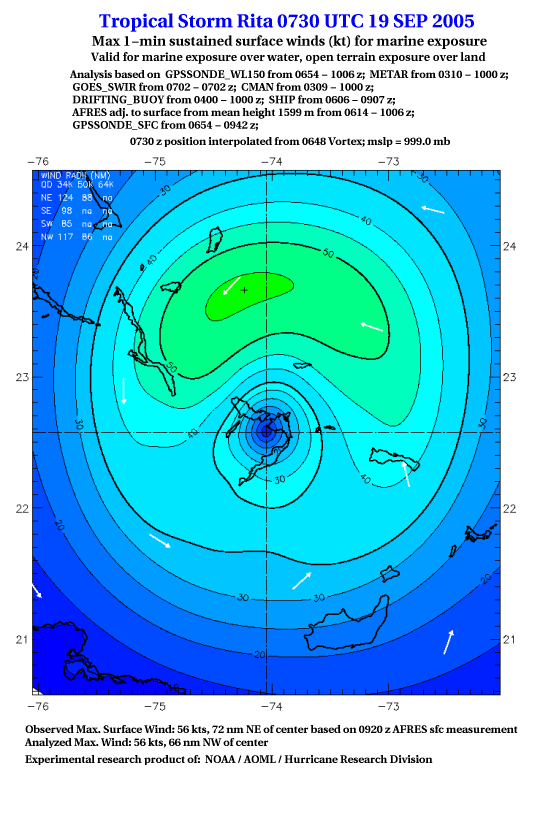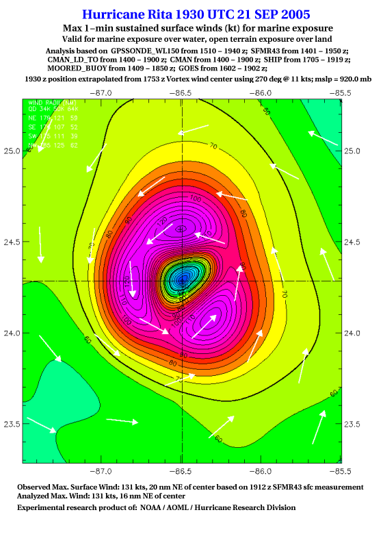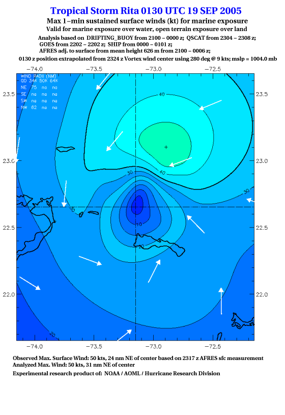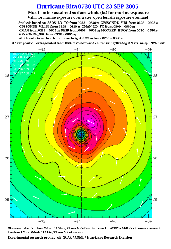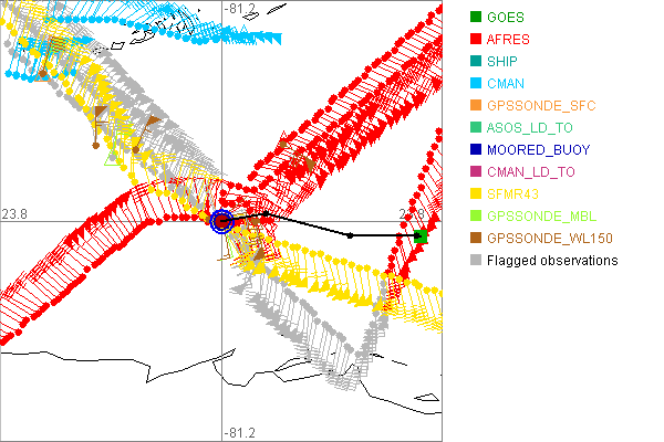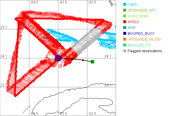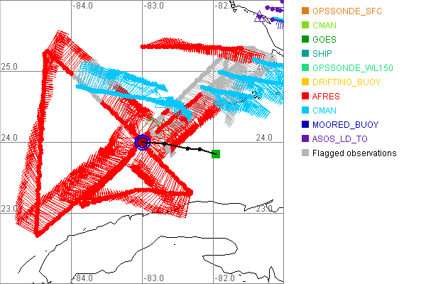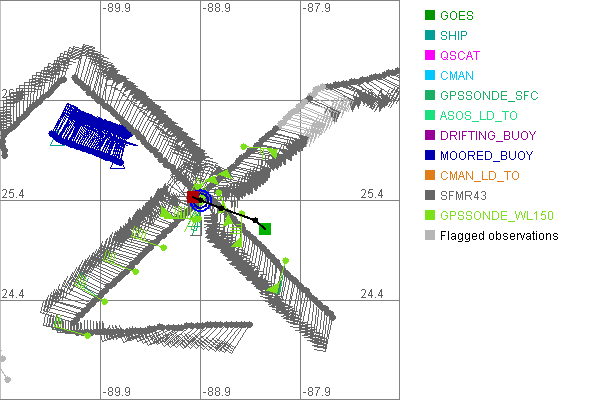 As a public service we are hosting the legacy H*wind archive that was formerly available through NOAA. Most of the archive was conducted in real-time so data collected after the analysis time were not available. Methods used to conduct the analyses evolved over the years. Grid spacing is on the order of 6 km and maximum domain size varies but is typically 8 x 8 degrees. There are known errors in some of the data coverage, mapping, and gridded products. For more information on the archive please go here. For realtime and post storm analysis of the 2014 season and a revised historical archive go here. |
