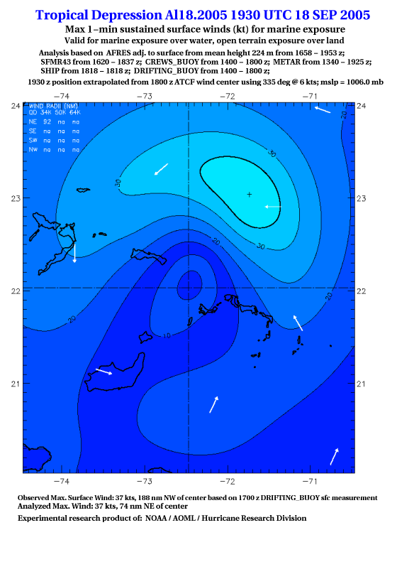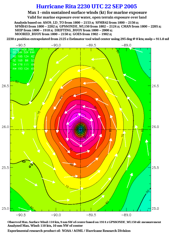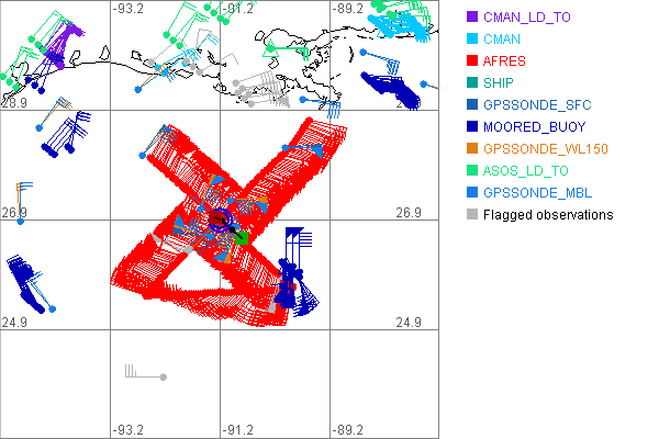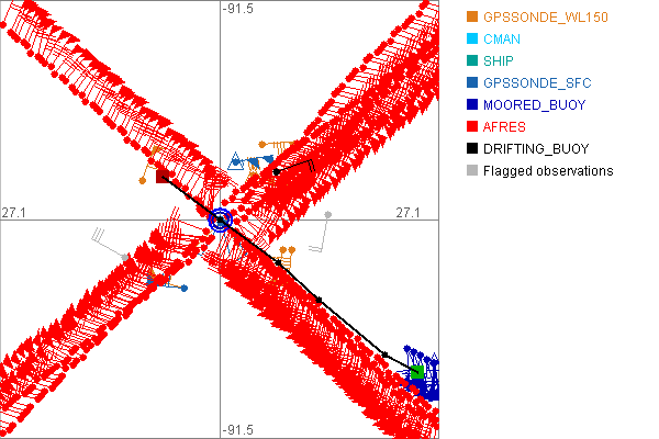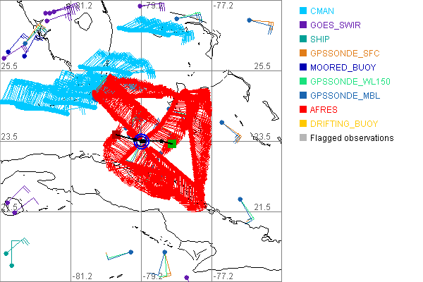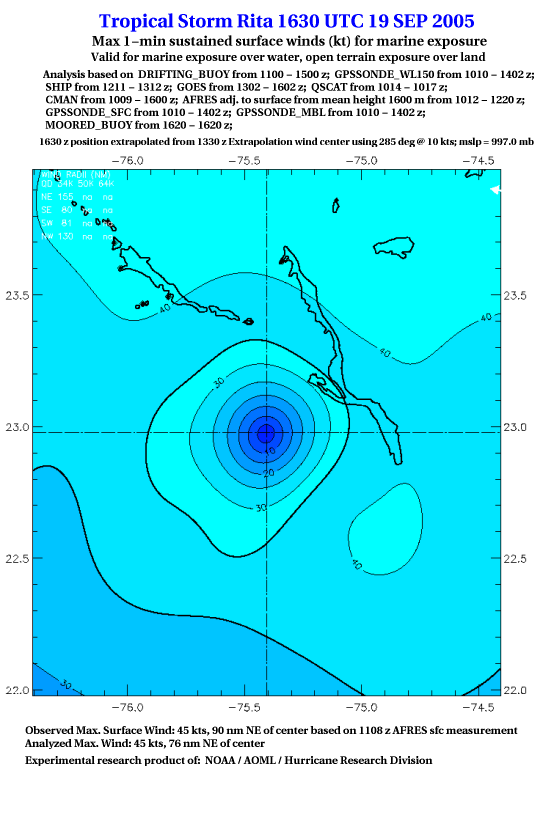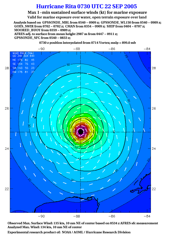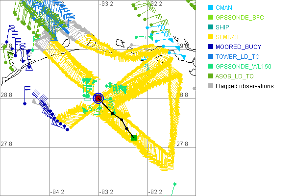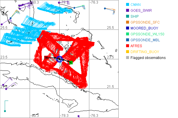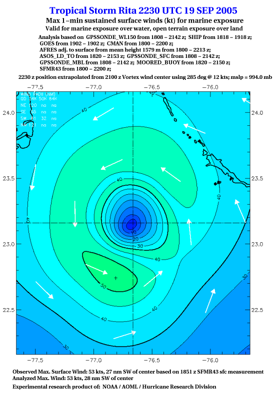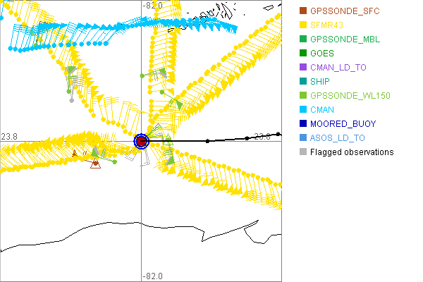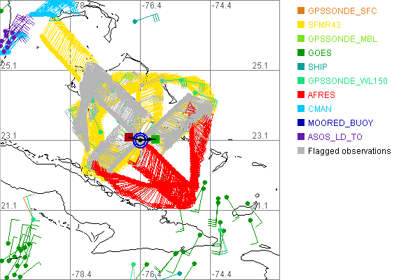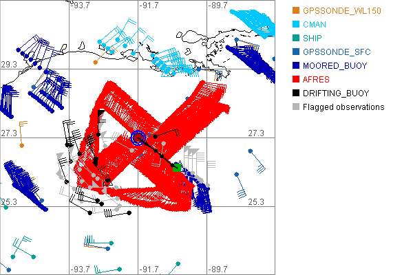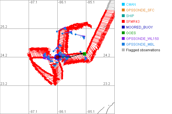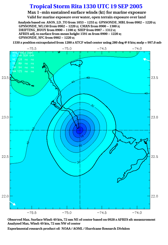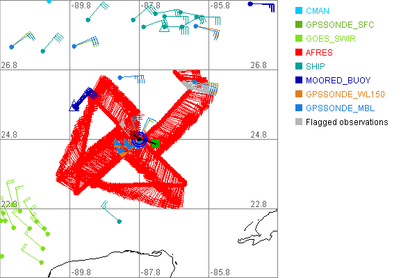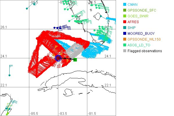As a public service we are hosting the legacy H*wind archive that was formerly available through NOAA. Most of the archive was conducted in real-time so data collected after the analysis time were not available. Methods used to conduct the analyses evolved over the years. Grid spacing is on the order of 6 km and maximum domain size varies but is typically 8 x 8 degrees. There are known errors in some of the data coverage, mapping, and gridded products. For more information on the archive please go here. For realtime and post storm analysis of the 2014 season and a revised historical archive go here. |