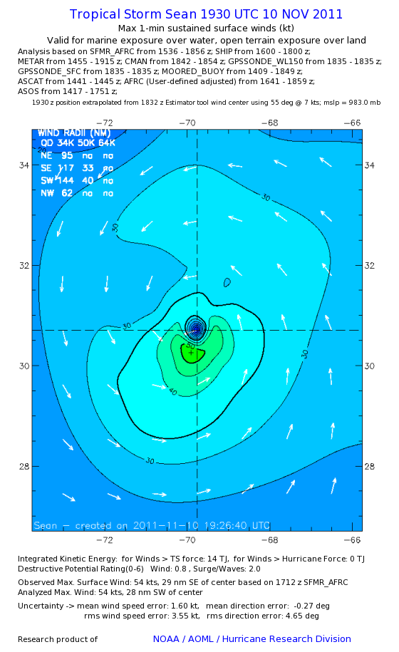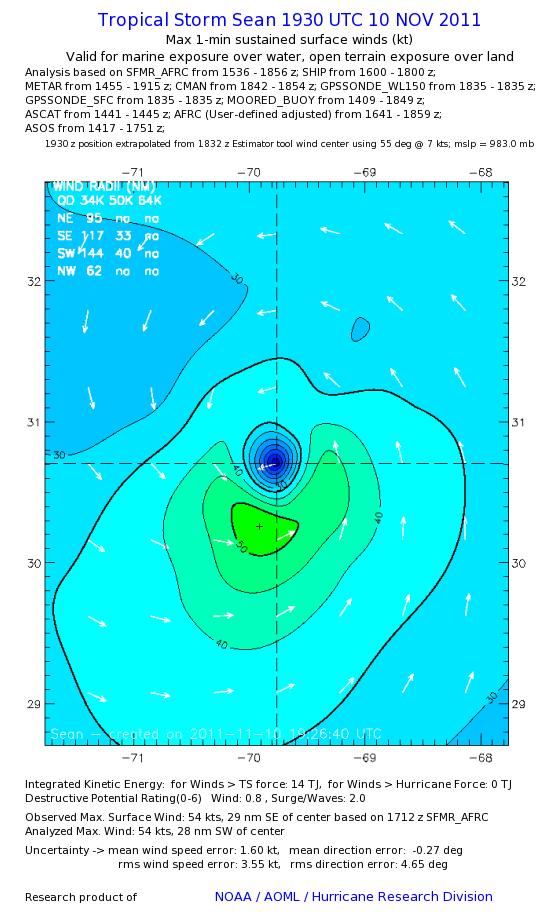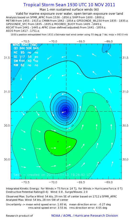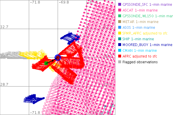 As a public service we are hosting the legacy H*wind archive that was formerly available through NOAA. Most of the archive was conducted in real-time so data collected after the analysis time were not available. Methods used to conduct the analyses evolved over the years. Grid spacing is on the order of 6 km and maximum domain size varies but is typically 8 x 8 degrees. There are known errors in some of the data coverage, mapping, and gridded products. For more information on the archive please go here. For realtime and post storm analysis of the 2014 season and a revised historical archive go here.