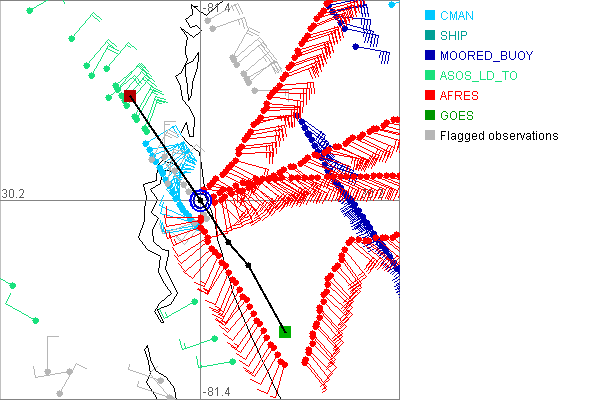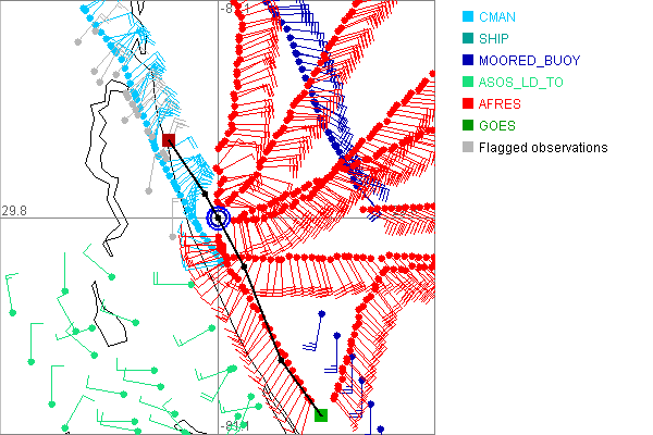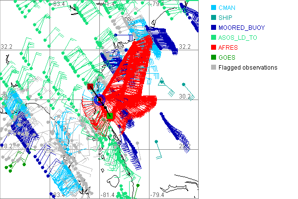 As a public service we are hosting the legacy H*wind archive that was formerly available through NOAA. Most of the archive was conducted in real-time so data collected after the analysis time were not available. Methods used to conduct the analyses evolved over the years. Grid spacing is on the order of 6 km and maximum domain size varies but is typically 8 x 8 degrees. There are known errors in some of the data coverage, mapping, and gridded products. For more information on the archive please go here. For realtime and post storm analysis of the 2014 season and a revised historical archive go here.