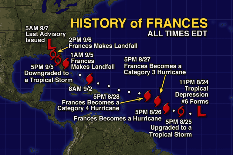 August 24 - September 7: Hurricane Frances History Graphic