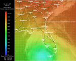 Dennis continues to intensify as it moves northward Saturday evening. This simple but colorful high-resolution image details wind and pressure readings over the Gulf and Florida.